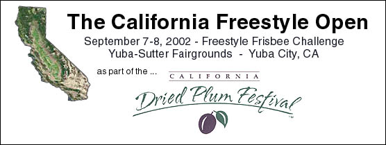 The first ever California Freestyle Open took place as part of the Dried Plum Festival in Yuba City, California last weekend and the event prooved to be a huge success. A much larger than expected player turnout helped fuel a very competitive finals where several teams performed nearly flawless routines. Team travelled from Colorado, Washington, Oregon and from all across California to play - including 2 current World Champions: Cindy Kruger and Larry Imperiale.